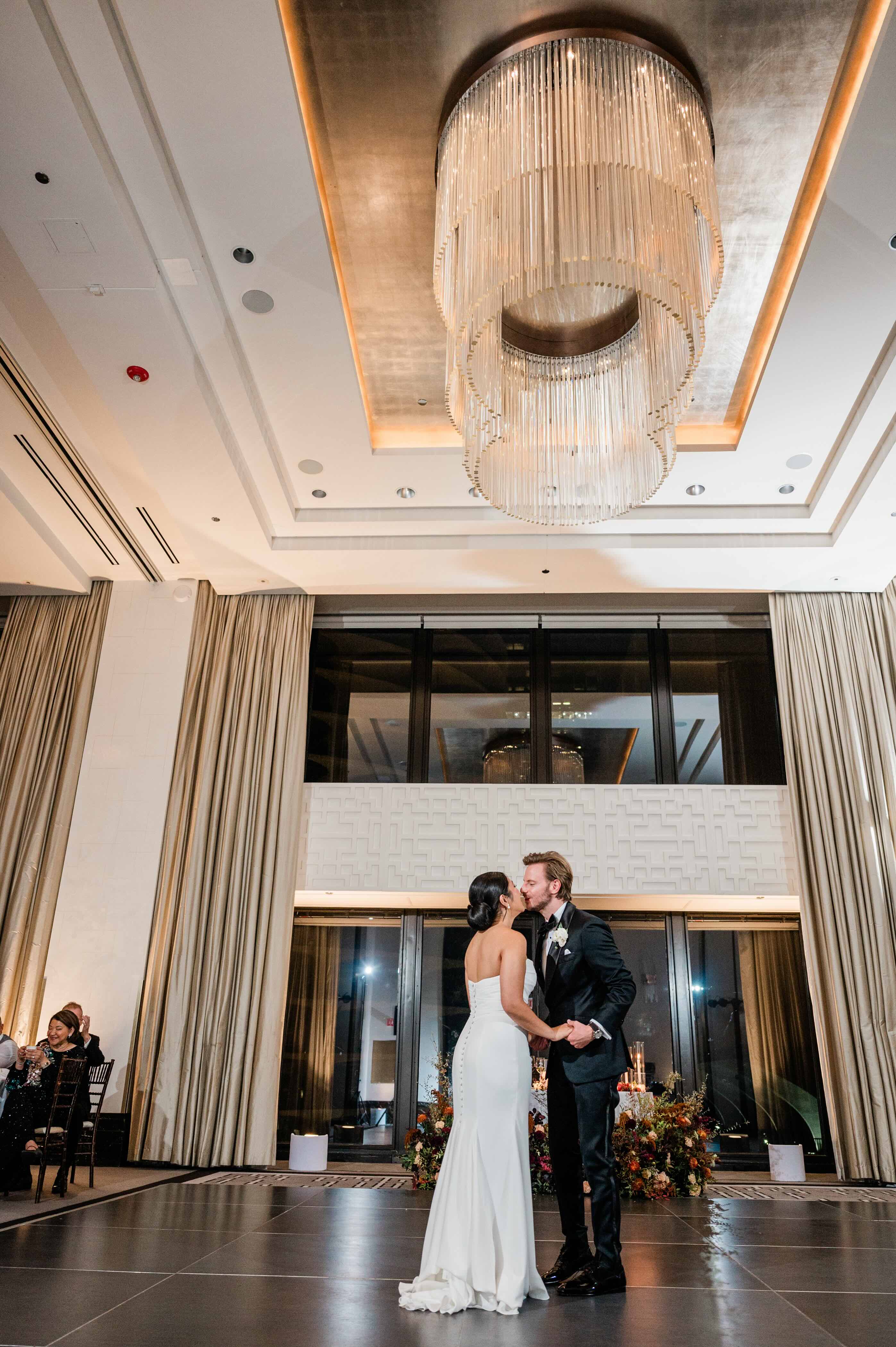 For the ceremony, the room was softened with romantic draping that created an intimate, glowing atmosphere. As the evening unfolded, guests were treated to one of the best surprises: a breathtaking nighttime view of the Chicago River that set the perfect backdrop for the celebration. It was a day that proved a little wind can’t compete with a whole lot of love, style, and thoughtful moments.