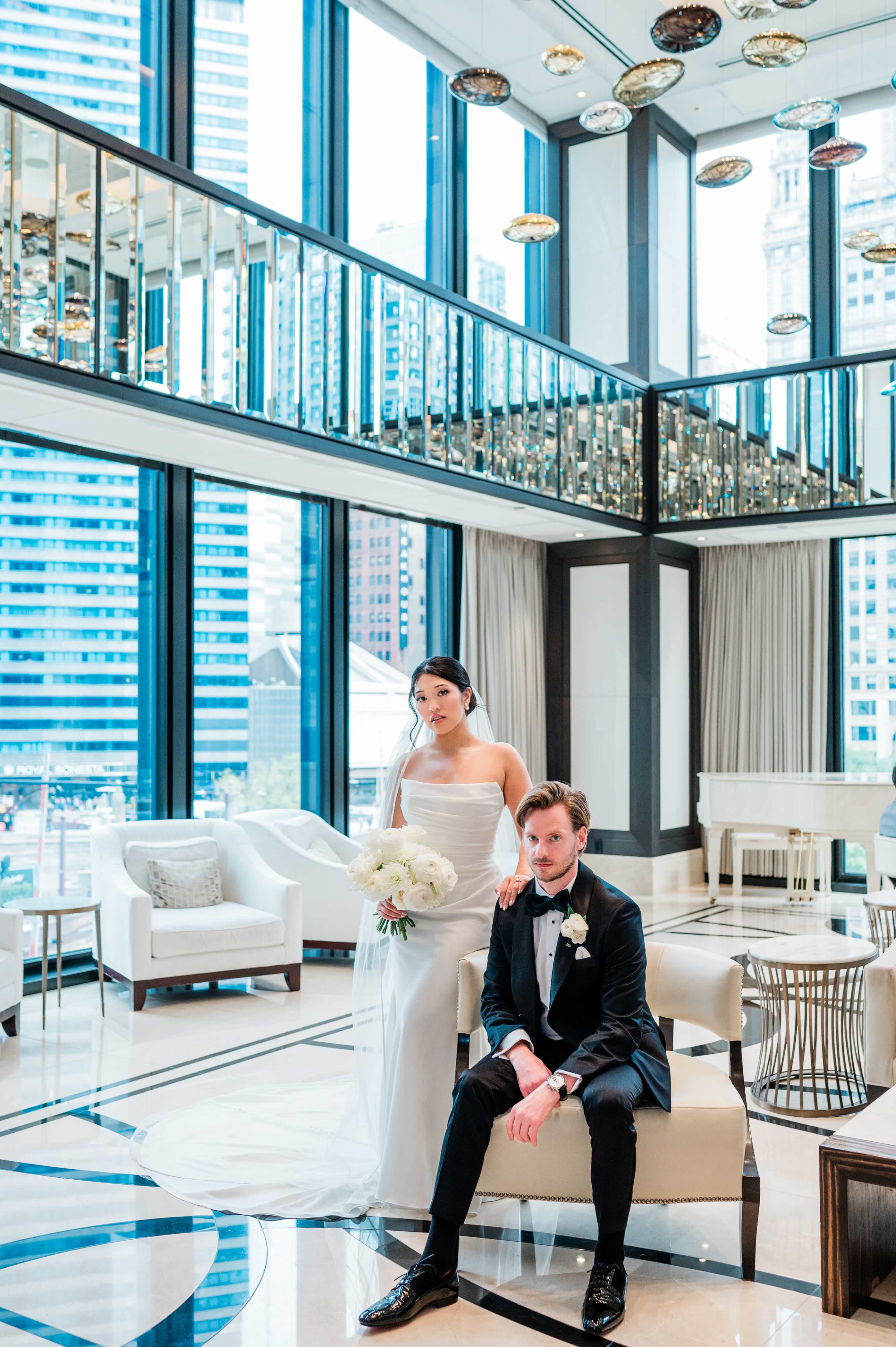 A refined and intimate wedding at The Langham, where timeless elegance, soft light, and modern romance came together along the Chicago River.